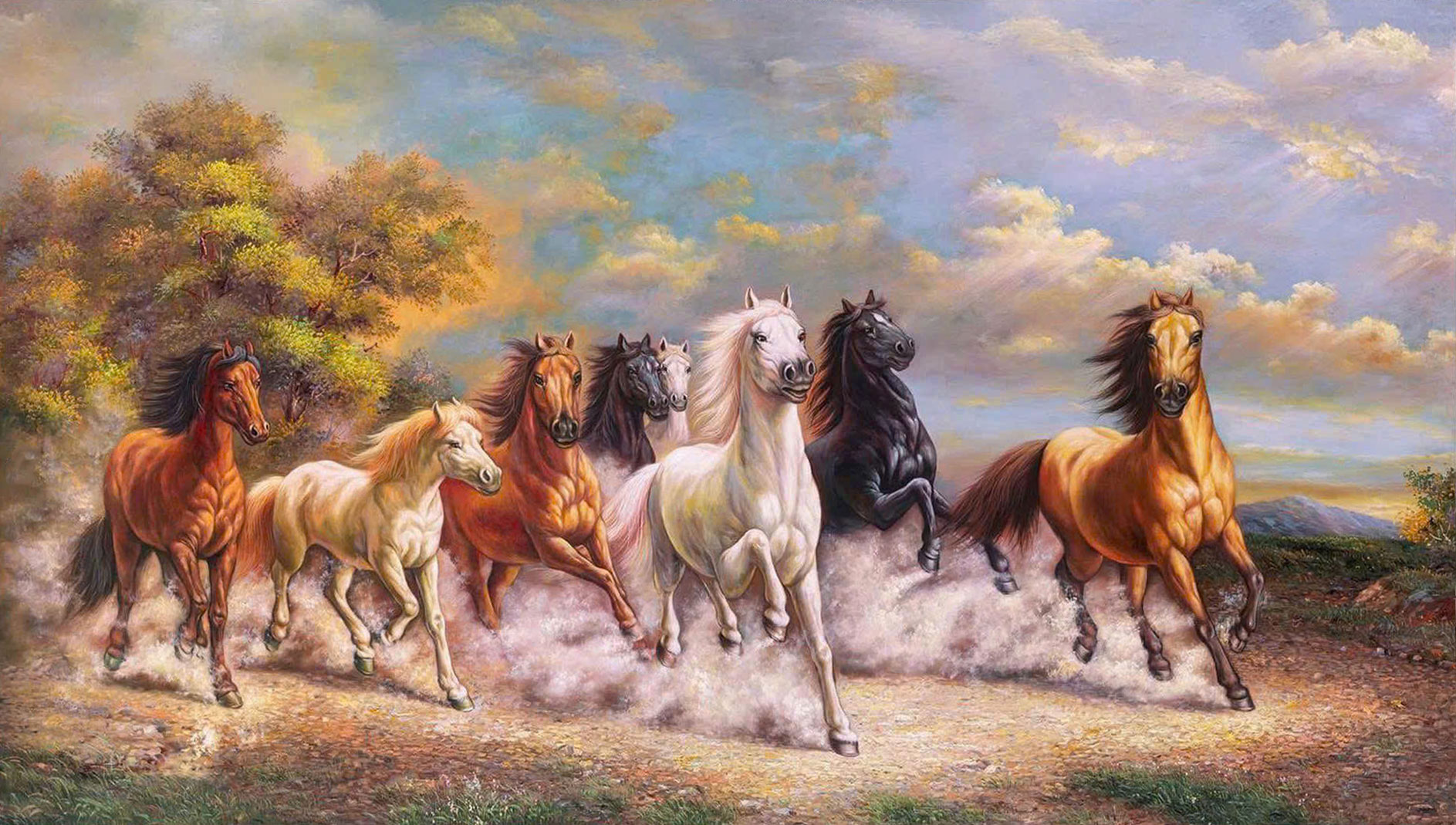 Tranh tám con ngựa phi nước đại mang ý nghĩa về sự bứt phá và thành công. Đây là món quà rất phù hợp dành tặng cho gia chủ làm kinh doanh hoặc người mới bắt đầu sự nghiệp tại ngôi nhà mới.
