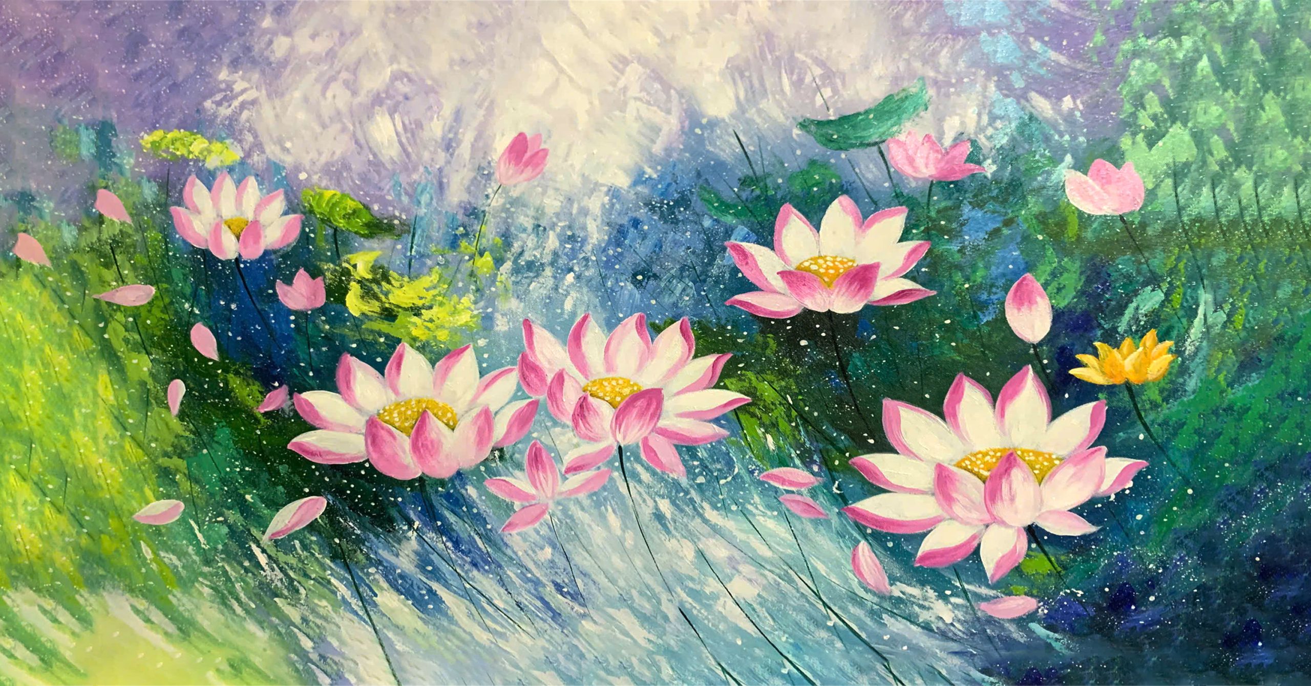 3.1. Tranh Sơn Dầu Hoa Sen – Thanh tịnh & dưỡng tâm