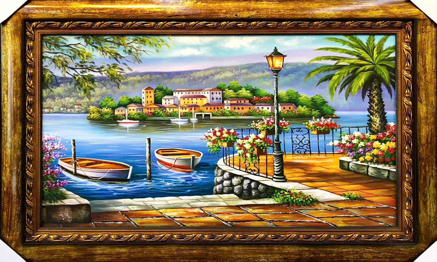Tranh sơn dầu Bến Thuyền Châu Âu SDTC211 tại Trình Công Decor được vẽ bằng tay 100% bằng màu sơn dầu