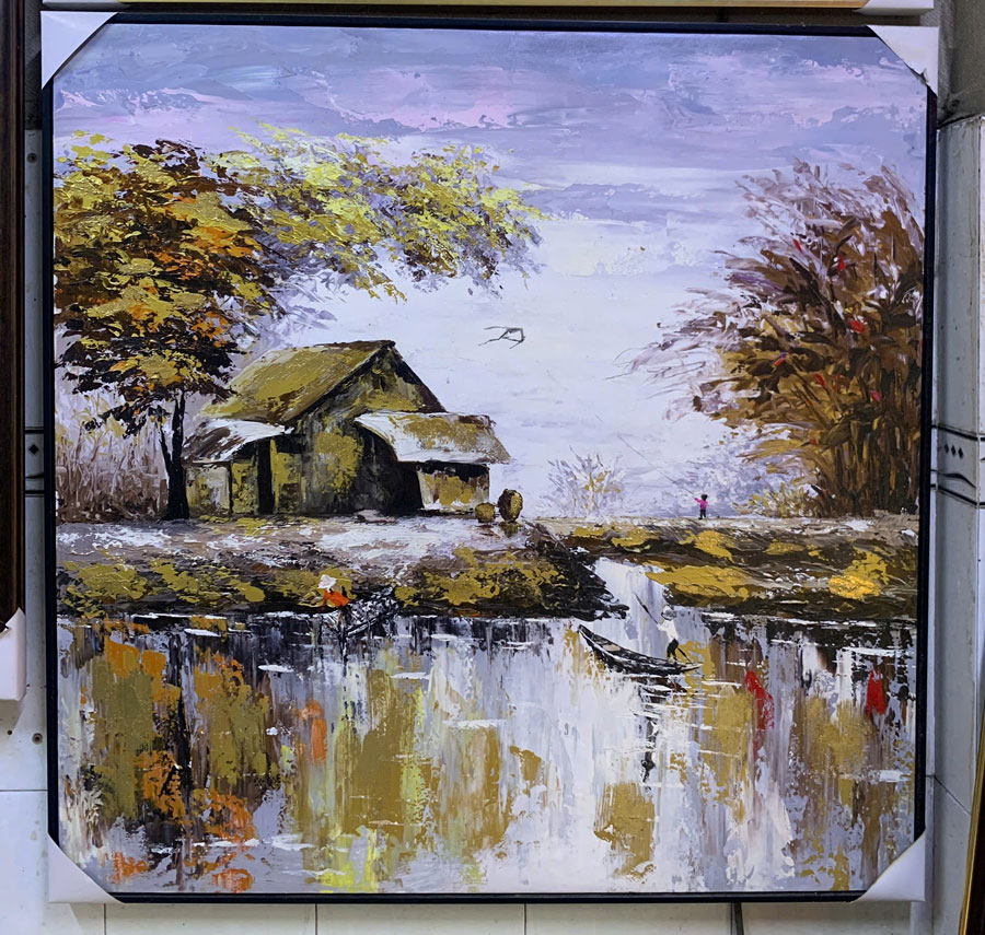 Nếu bạn yêu thích dòng tranh này, đừng bỏ qua bộ sưu tập Tranh sơn dầu Đồng Quê. Mỗi tác phẩm là một lát cắt khác nhau về đời sống thôn quê – từ cánh đồng lúa chín vàng, dòng sông hiền hòa cho đến khung cảnh chợ quê nhộn nhịp.