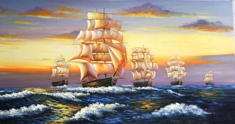 Ý nghĩa phong thủy của Tranh sơn dầu Cùng Buồm Tiến Bước