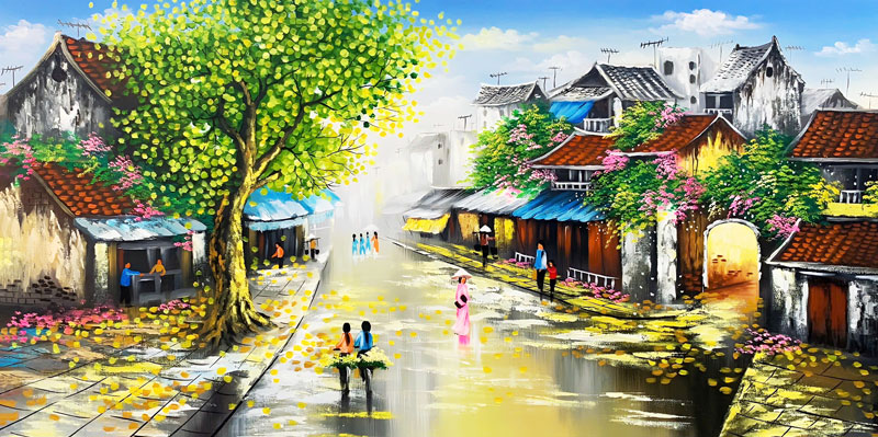 Tranh Sơn Dầu “Phố Xưa Hà Nội Mùa Thu”
