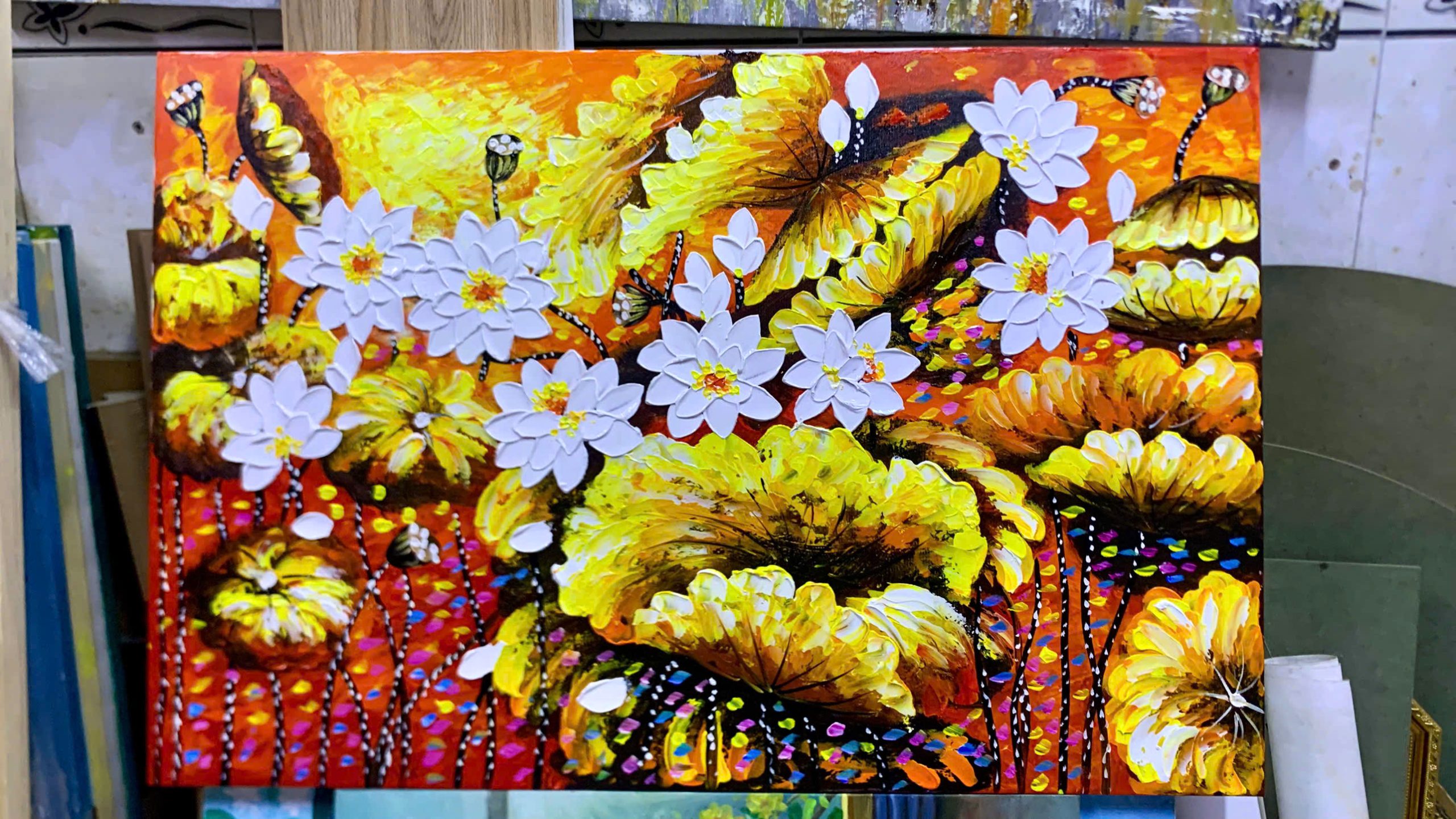Tranh sơn dầu Kim Liên Khai Phúc SDTC237 tại Trình Công Decor được vẽ bằng tay 100% bằng màu sơn dầu