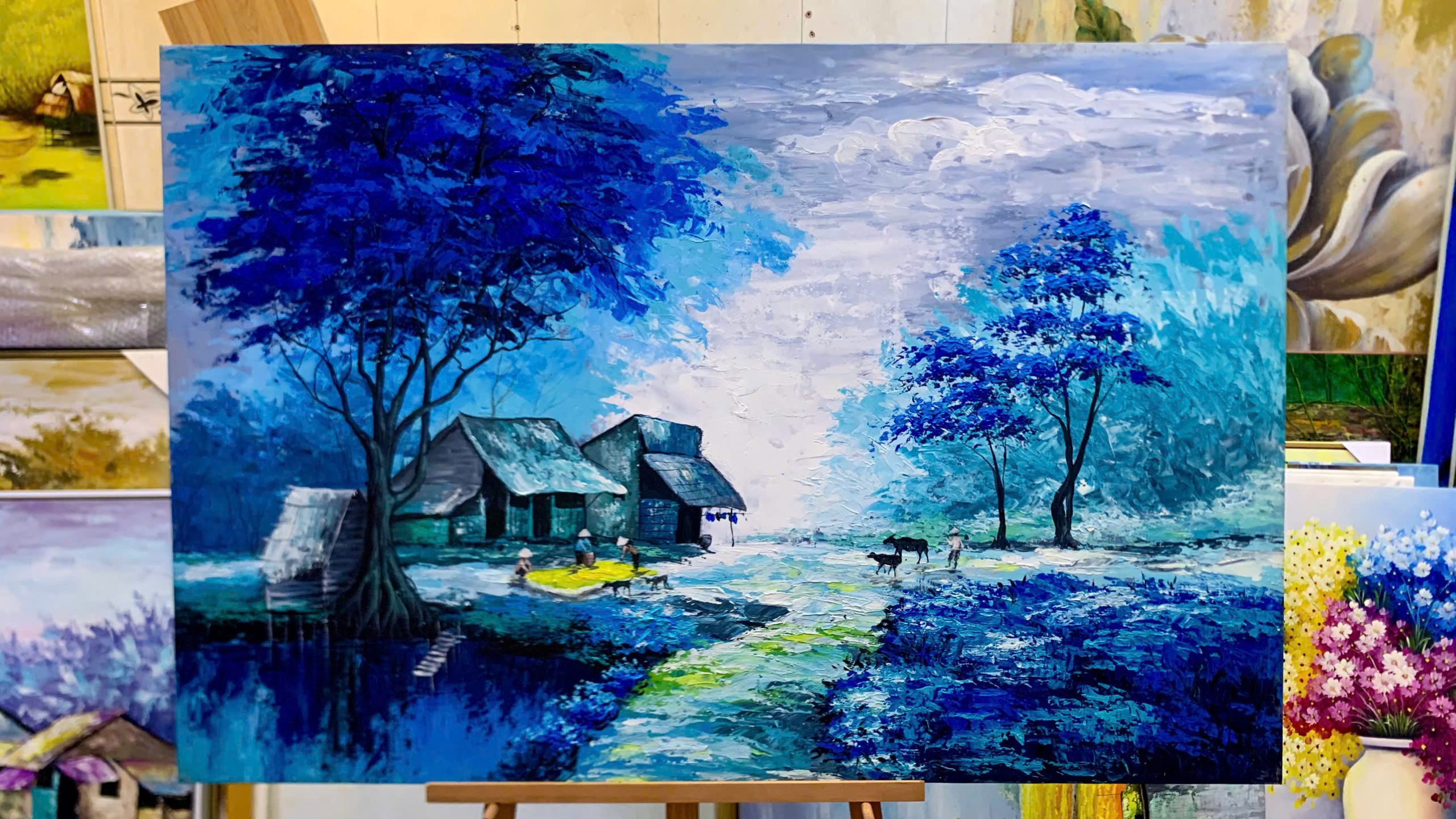 Tranh sơn dầu Làng Quê Trong Sương SDTC246 tại Trình Công Decor được vẽ bằng tay 100% bằng màu sơn dầu