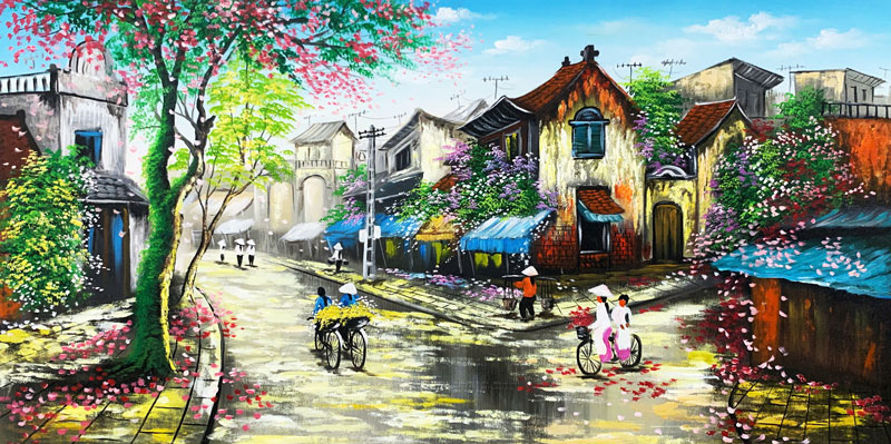 Tranh sơn dầu Phố Xưa Hai Mùa SDTC45