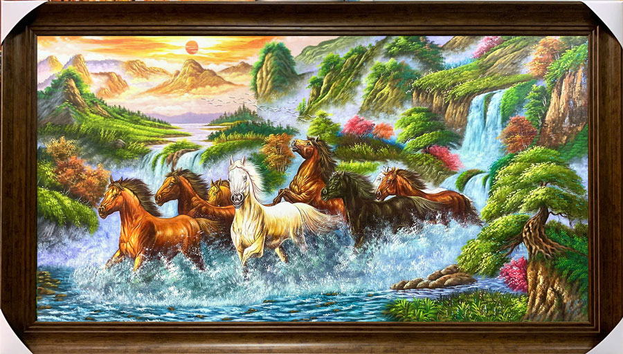 Tranh sơn dầu Phong Cảnh Bát Mã SDTC15 – Vẽ tay 100% trên vải bố, khung composite cao cấp, mang ý nghĩa phong thủy may mắn, thích hợp treo phòng khách.