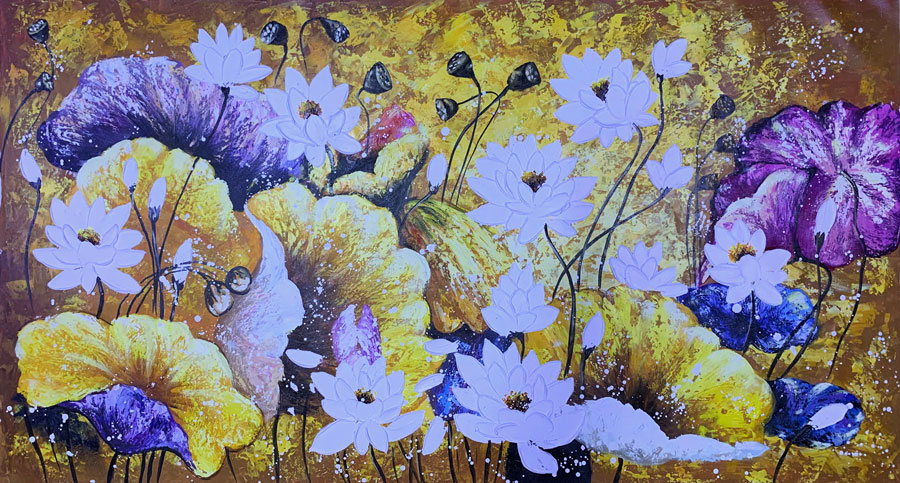 Tranh Sơn Dầu Trình Công Decor xin giới thiệu đến Quý Khách hàng bức “Tranh Sơn Dầu Sen Quý Tụ Hoa Vinh SDTC207”, một trong những tác phẩm mang đậm dấu ấn nghệ thuật và phong thủy, được sáng tác theo phong cách hoa sen vàng tím đắp nổi đặc trưng.