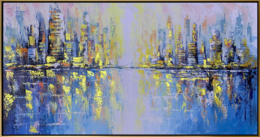 Tranh sơn dầu Thành Phố Ánh Vàng SDTC122 tại Trình Công Decor được vẽ bằng tay 100% bằng màu sơn dầu