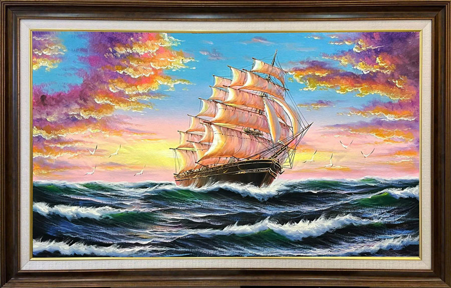 Tranh sơn dầu Thuyền Buồm Hoàng Hôn SDTC212 tại Trình Công Decor được vẽ bằng tay 100% bằng màu sơn dầu