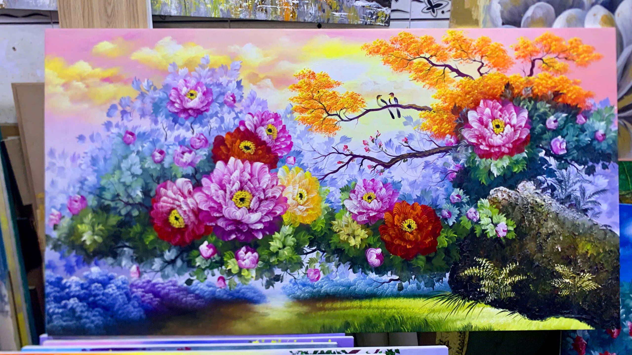 Tranh sơn dầu Vườn Hoa Phú Quý SDTC116 tại Trình Công Decor được vẽ bằng tay 100% bằng màu sơn dầu