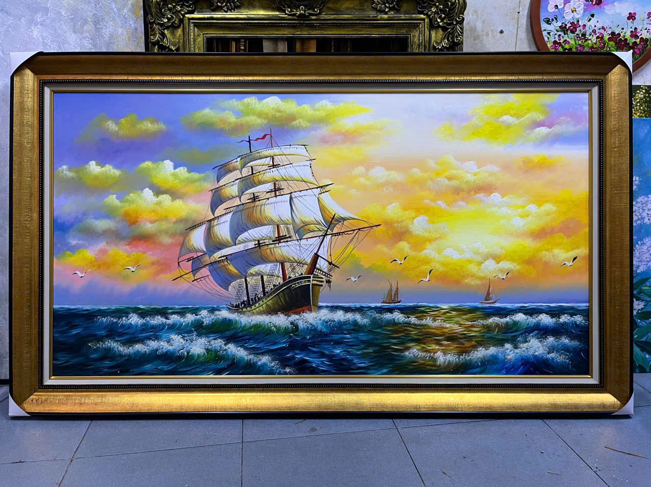 Tranh sơn dầu Vượt Sóng Ra Khơi SDTC110 mang ý nghĩa Thuận Buồm Xuôi Gió, biểu tượng thành công và tài lộc. Vẽ tay cao cấp, phù hợp treo phòng khách, văn phòng.